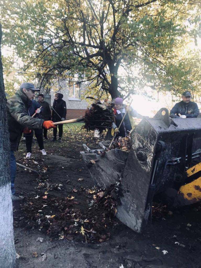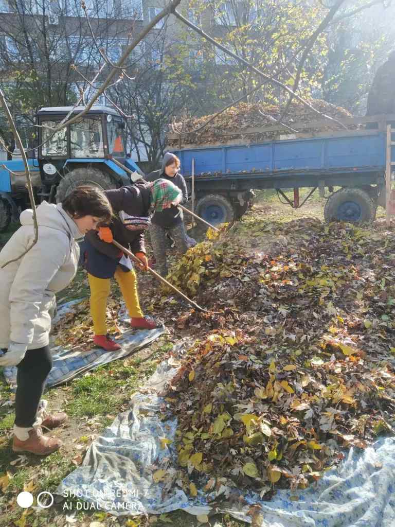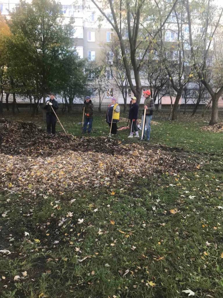 Прибирання двірниками опалого листя на прибудинкових територіях